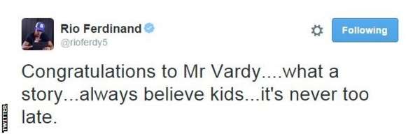 Manchester United boss Louis van Gaal also praised Vardy's "amazing and fantastic" feat, saying: "The goal he scored is also amazing because it is not so easy.