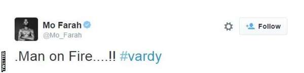 In the minute after Vardy scored there were 26,839 tweets mentioning the Leicester striker's name - and not surprisingly he was trending.