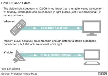 While the spectrum for radio waves is in short supply, the visible light spectrum is 10,000 times larger, meaning it is unlikely to run out any time soon.