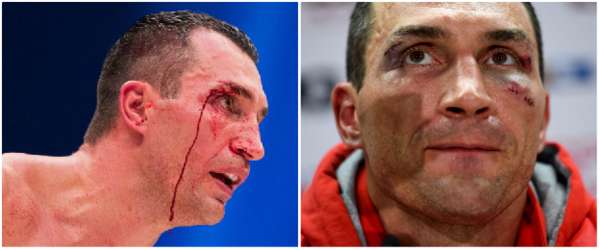 Klitschko's left cheek began to bleed early on in the fight, with bleeding above his right eye later on