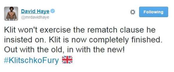 "We'll soon work out when and where the rematch will take place and let you know," he added.